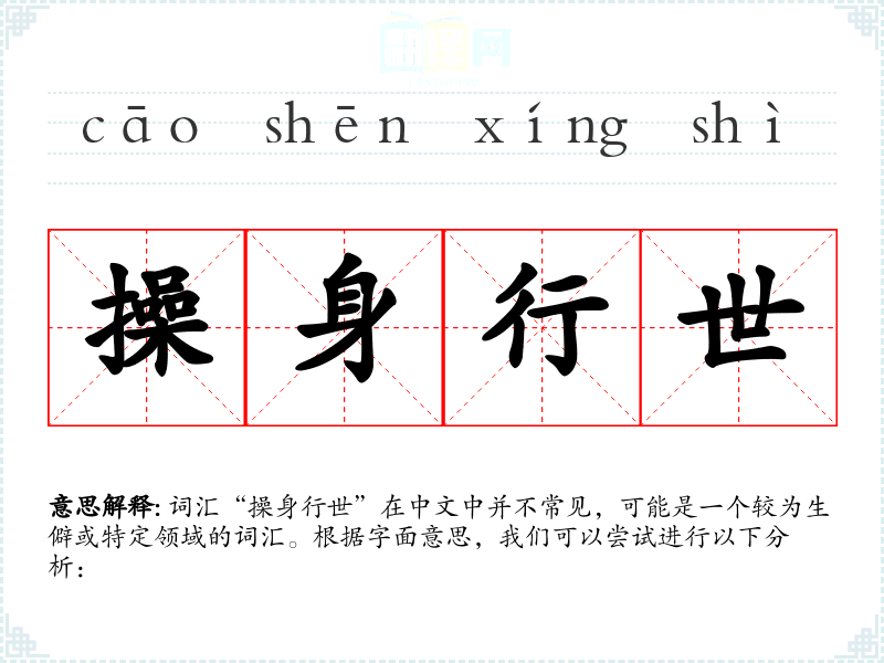 词汇“操身行世”在中文中并不常见,可能是一个较为生僻或特定领域的词汇。根据字面意思,我们可以尝试进行以下分析: