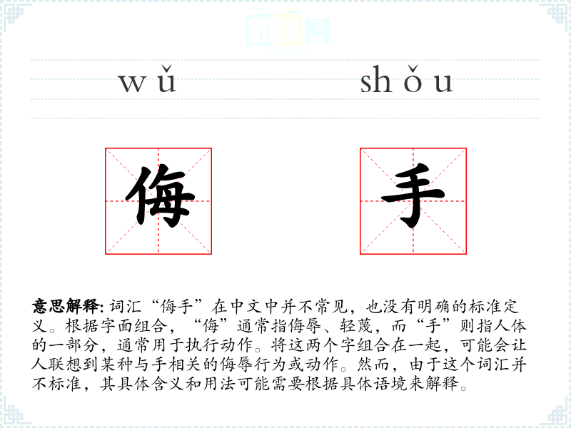 在特定的文化或社会背景中,如果“侮手”被使用,它可能与特定的社会行为或文化习俗相关,用以描述某种特定的侮辱行为。