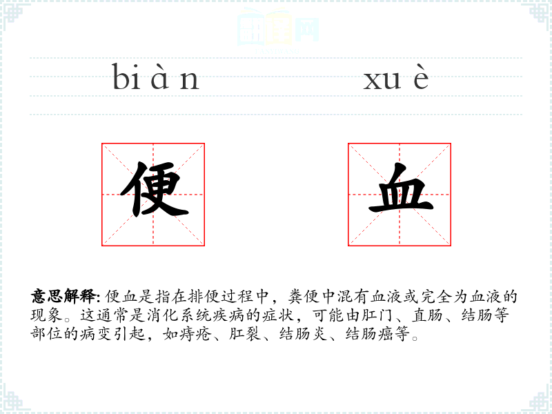 - 反义词:无(便血是一个具体的医学症状,没有直接的反义词)
