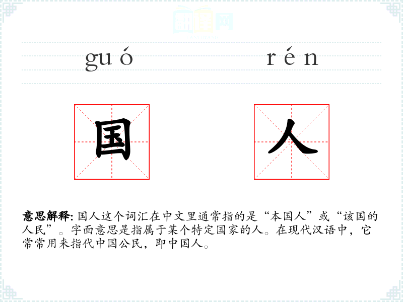 - 反义词:外国人、外籍人士