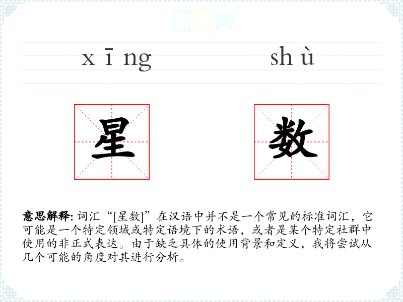 由于“[星数]”不是一个标准词汇,其具体含义需要根据具体语境来确定。在语言学习和表达中,了解特定语境下的术语和表达是非常重要的。