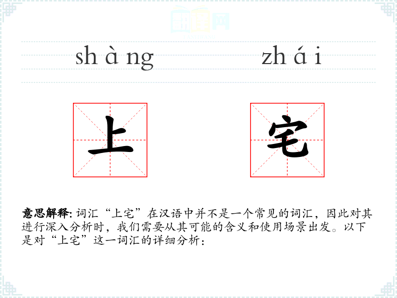 词汇“上宅”在汉语中并不是一个常见的词汇,因此对其进行深入分析时,我们需要从其可能的含义和使用场景出发。以下是对“上宅”这一词汇的详细分析: