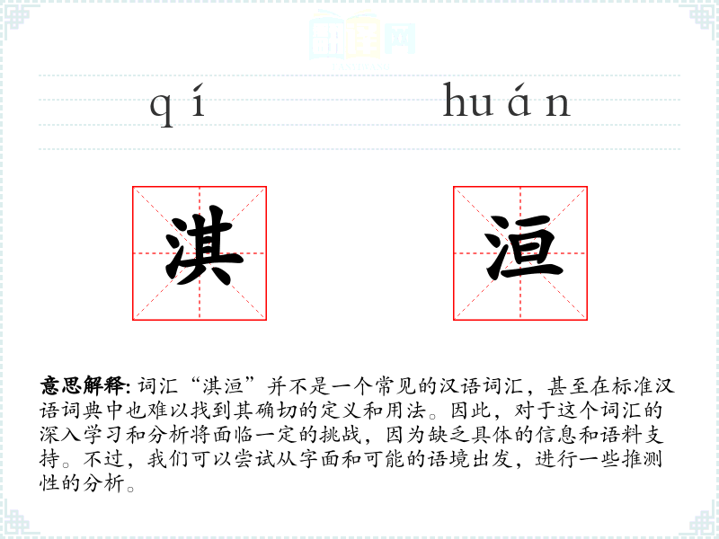 词汇“淇洹”并不是一个常见的汉语词汇,甚至在标准汉语词典中也难以找到其确切的定义和用法。因此,对于这个词汇的深入学习和分析将面临一定的挑战,因为缺乏具体的信息和语料支持。不过,我们可以尝试从字面和可能的语境出发,进行一些推测性的分析。