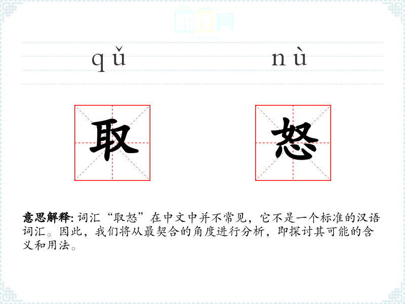词汇“取怒”在中文中并不常见,它不是一个标准的汉语词汇。因此,我们将从最契合的角度进行分析,即探讨其可能的含义和用法。