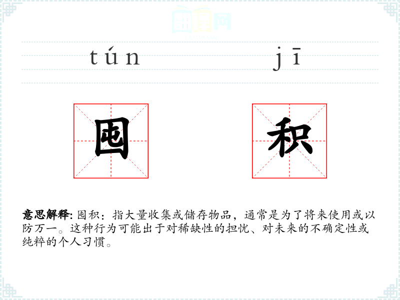 "囤积"的意思解释、囤积是什么意思由翻译网汉语词典查词提供。