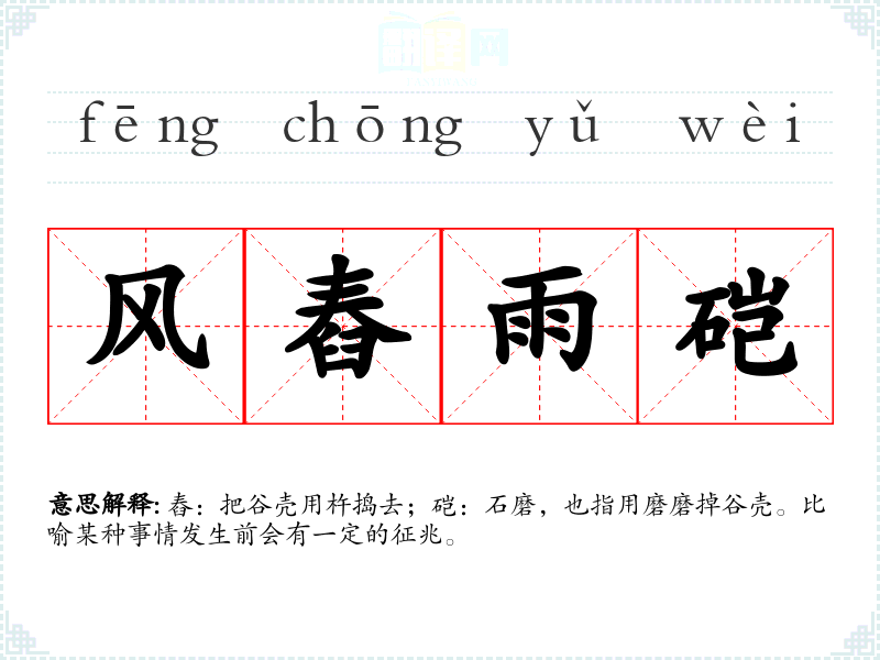 舂:把谷壳用杵捣去;硙:石磨,也指用磨磨掉谷壳。比喻某种事情发生前会有一定的征兆。