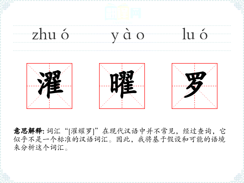 由于“[濯耀罗]”不是一个标准词汇,我们可以尝试拆分和解释其组成部分: