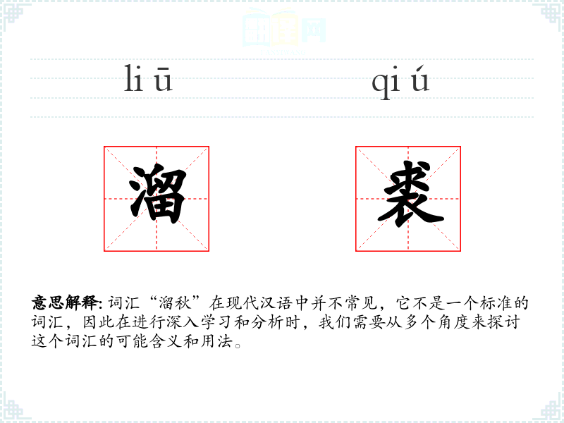 由于“溜秋”不是一个标准词汇,我们对它的理解可能非常有限。在语言学习和表达中,我们需要关注标准词汇的使用,以确保沟通的准确性和有效性。