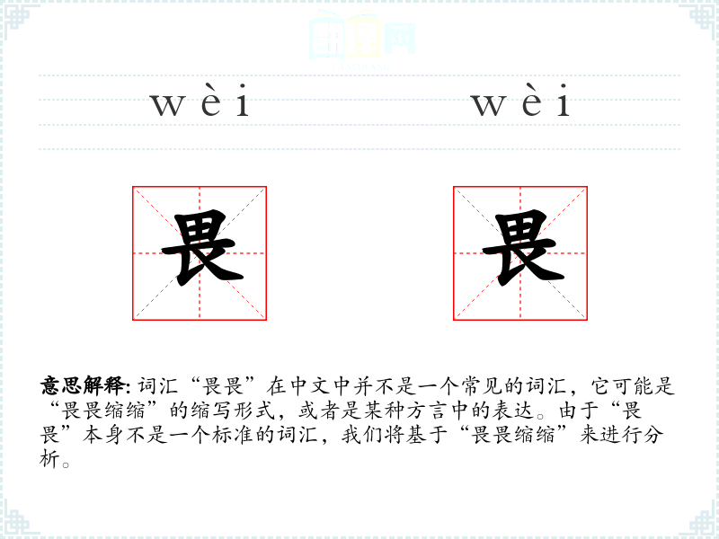 词汇“畏畏”在中文中并不是一个常见的词汇,它可能是“畏畏缩缩”的缩写形式,或者是某种方言中的表达。由于“畏畏”本身不是一个标准的词汇,我们将基于“畏畏缩缩”来进行分析。