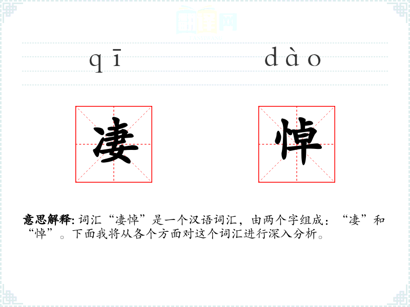 词汇“凄悼”是一个汉语词汇,由两个字组成:“凄”和“悼”。下面我将从各个方面对这个词汇进行深入分析。