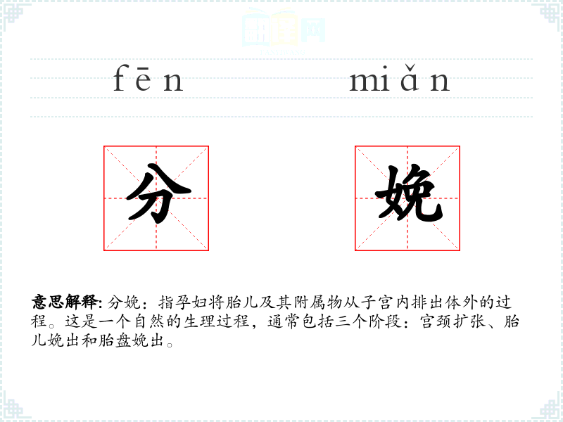 分娩一词源自古代汉语,最初的意思是“分出”或“分离”,后来逐渐演变为特指孕妇生产的过程。在古代,分娩被视为一个危险的过程,因此相关的词汇往往带有一定的负面色彩。