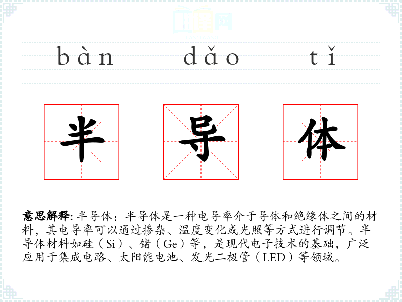 在不同语言中,如英语中的“semiconductor”,德语中的“Halbleiter”,虽然发音和拼写不同,但其科学含义和应用是相同的。