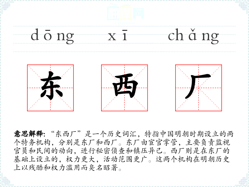 “东西厂”这个词不仅是一个历史词汇,也是一个强有力的比喻,用以讨论权力的滥用和透明度的重要性。在我的语言学*和表达中,理解这个词的历史和文化背景,有助于我更深刻地理解权力和社会的关系。