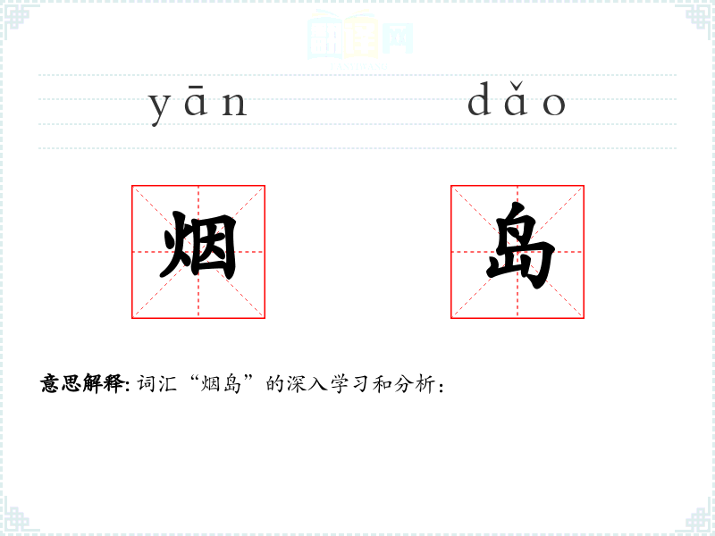 “烟岛”字面意思是指被烟雾笼罩的岛屿。基本含义可能指的是一个地理位置,或者在文学作品中象征性地指代某个被神秘或不可见因素包围的地方。