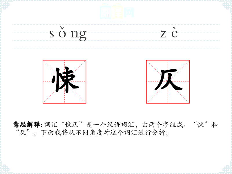 - 悚:源自古代汉语,原意为恐惧。