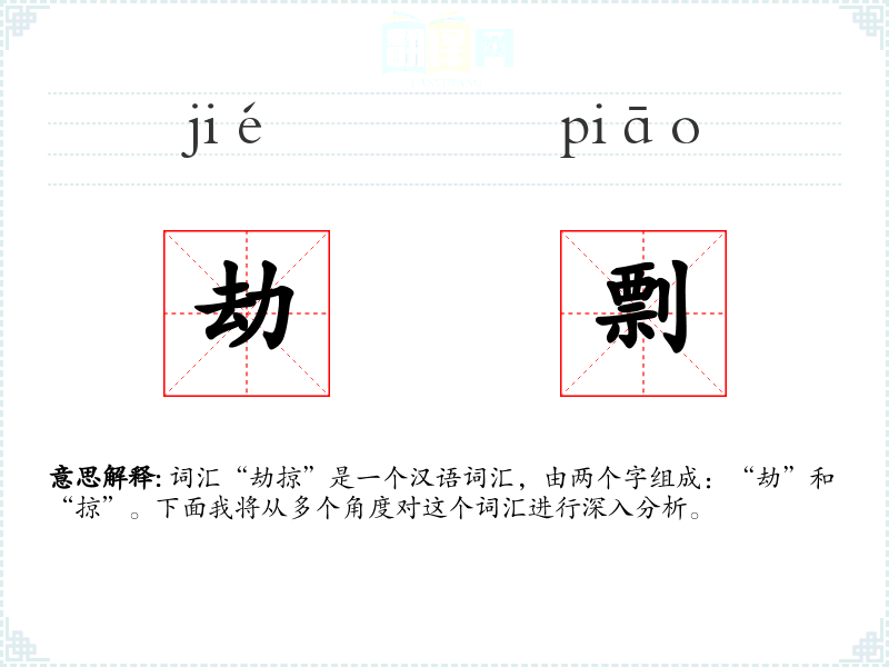 词汇“劫掠”是一个汉语词汇,由两个字组成:“劫”和“掠”。下面我将从多个角度对这个词汇进行深入分析。