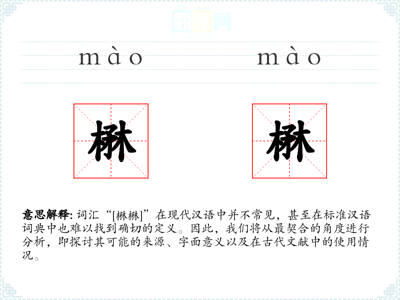 词汇“[楙楙]”在现代汉语中并不常见,甚至在标准汉语词典中也难以找到确切的定义。因此,我们将从最契合的角度进行分析,即探讨其可能的来源、字面意义以及在古代文献中的使用情况。
