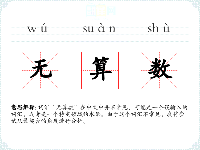 “无算数”这个词汇的字面意思可能指的是“不计数”或“无法计算”。然而,由于这个词汇不常见,其确切含义可能需要更多的上下文来确定。
