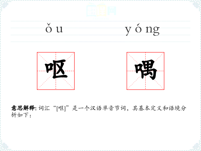 词汇“[呕]”是一个汉语单音节词,其基本定义和语境分析如下: