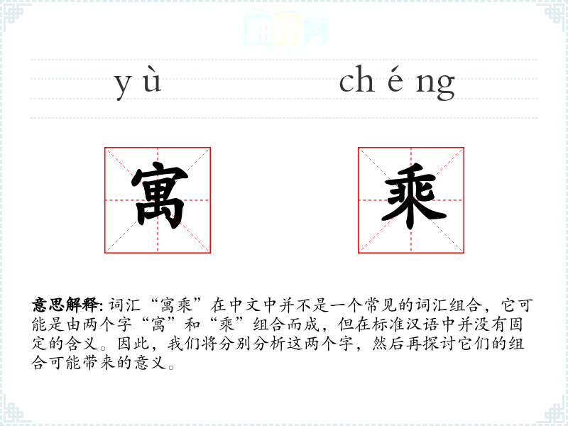 词汇“寓乘”在中文中并不是一个常见的词汇组合,它可能是由两个字“寓”和“乘”组合而成,但在标准汉语中并没有固定的含义。因此,我们将分别分析这两个字,然后再探讨它们的组合可能带来的意义。