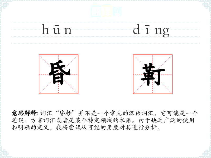 词汇“昏杪”并不是一个常见的汉语词汇,它可能是一个笔误、方言词汇或者是某个特定领域的术语。由于缺乏广泛的使用和明确的定义,我将尝试从可能的角度对其进行分析。
