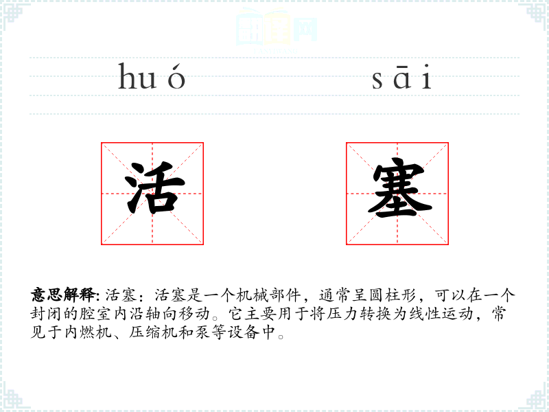"活塞"的意思解释、活塞是什么意思由翻译网汉语词典查词提供。
