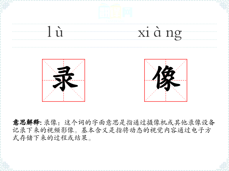 "录像"的意思解释、录像是什么意思由翻译网汉语词典查词提供。