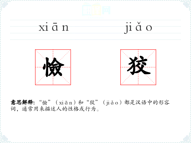 “憸”(xiān)和“狡”(jiǎo)都是汉语中的形容词,通常用来描述人的性格或行为。