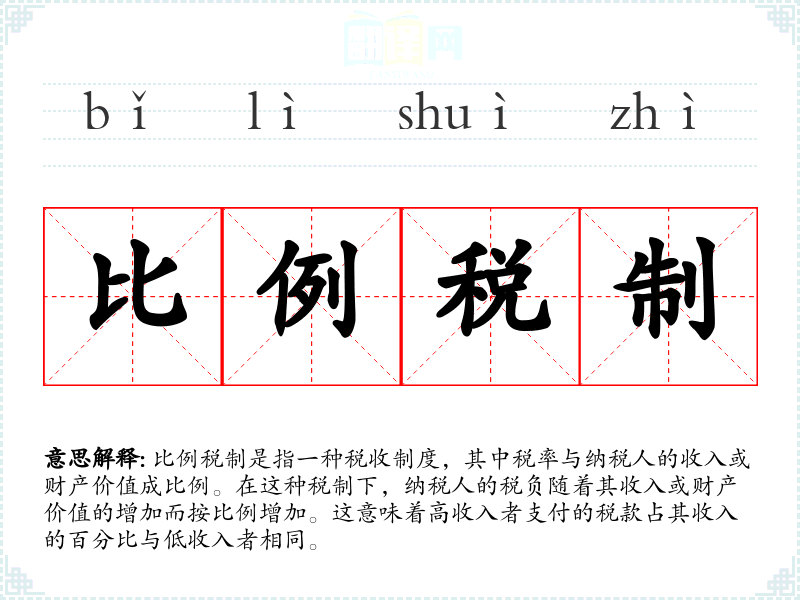 比例税制是指一种税收制度,其中税率与纳税人的收入或财产价值成比例。在这种税制下,纳税人的税负随着其收入或财产价值的增加而按比例增加。这意味着高收入者支付的税款占其收入的百分比与低收入者相同。
