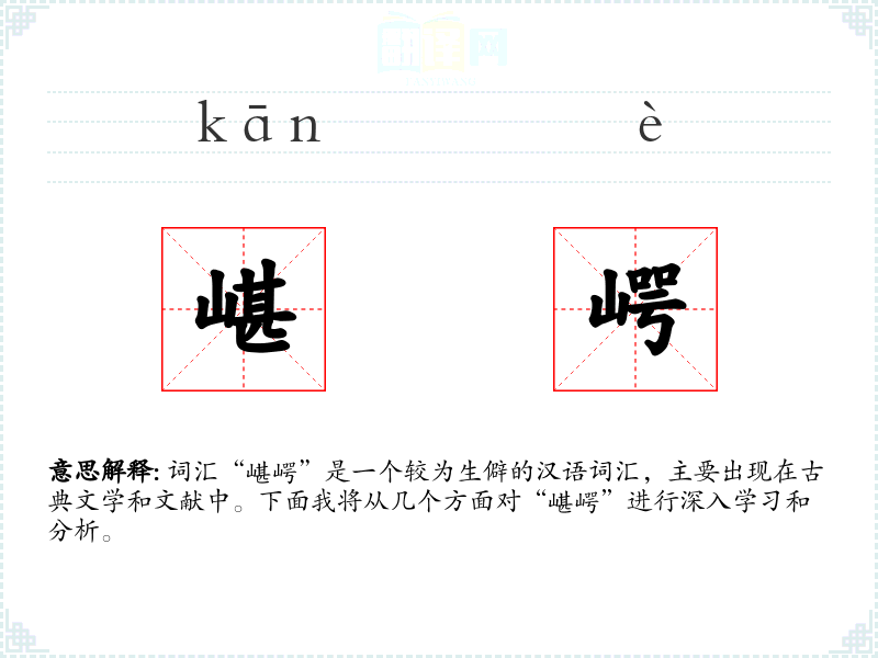 “嵁崿”是一个富有文学色彩的词汇,虽然在现代生活中使用较少,但在文学创作和历史描述中仍具有重要意义。了解和掌握这样的词汇,有助于丰富语言表达和文化理解。