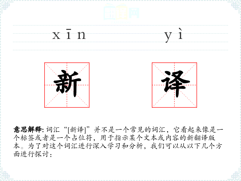 “[新译]”作为一个标识,提醒我们在语言学习和文化交流中,持续的更新和改进是必要的。它不仅是一个词汇,更是一种文化和社会进步的象征。
