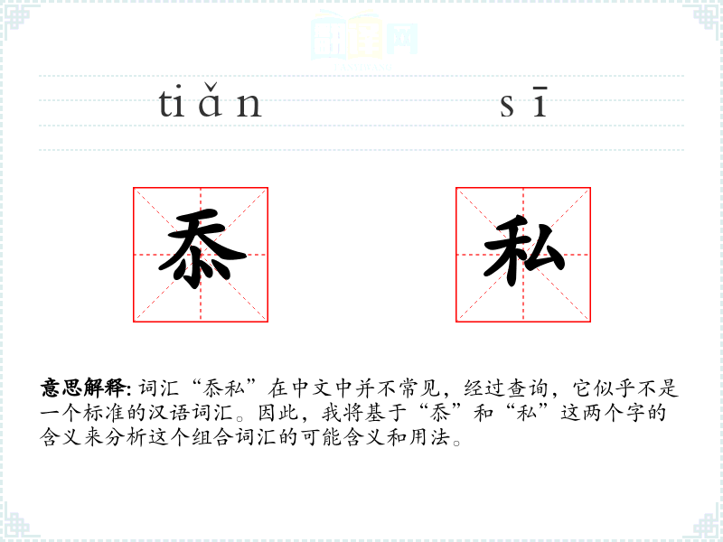 词汇“忝私”在中文中并不常见,经过查询,它似乎不是一个标准的汉语词汇。因此,我将基于“忝”和“私”这两个字的含义来分析这个组合词汇的可能含义和用法。