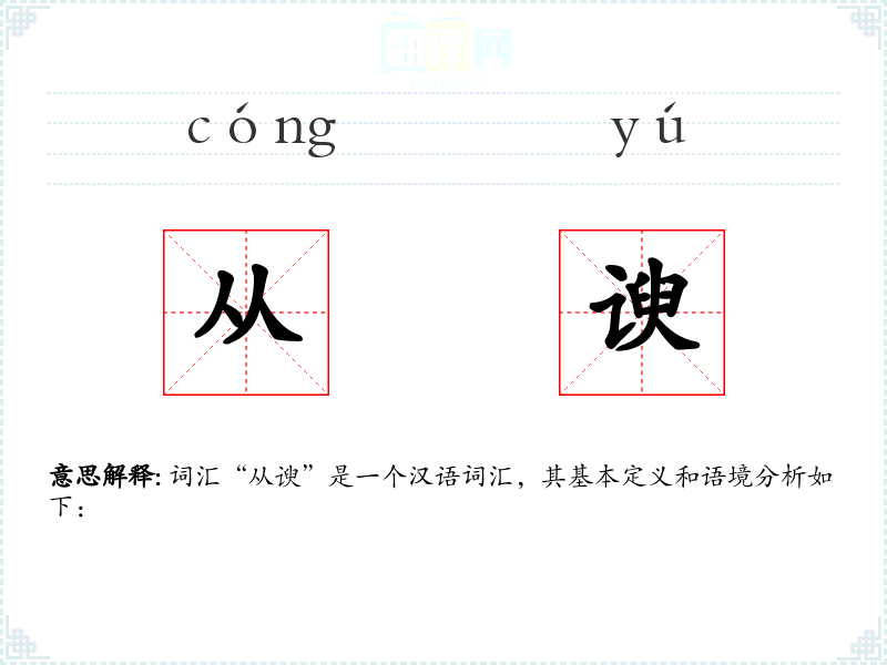 词汇“从谀”是一个汉语词汇,其基本定义和语境分析如下: