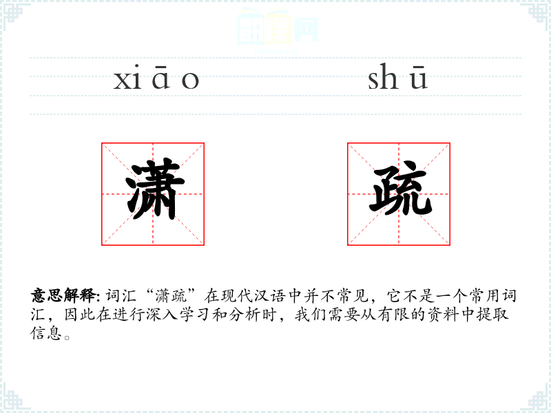 词汇“潇疏”在现代汉语中并不常见,它不是一个常用词汇,因此在进行深入学习和分析时,我们需要从有限的资料中提取信息。
