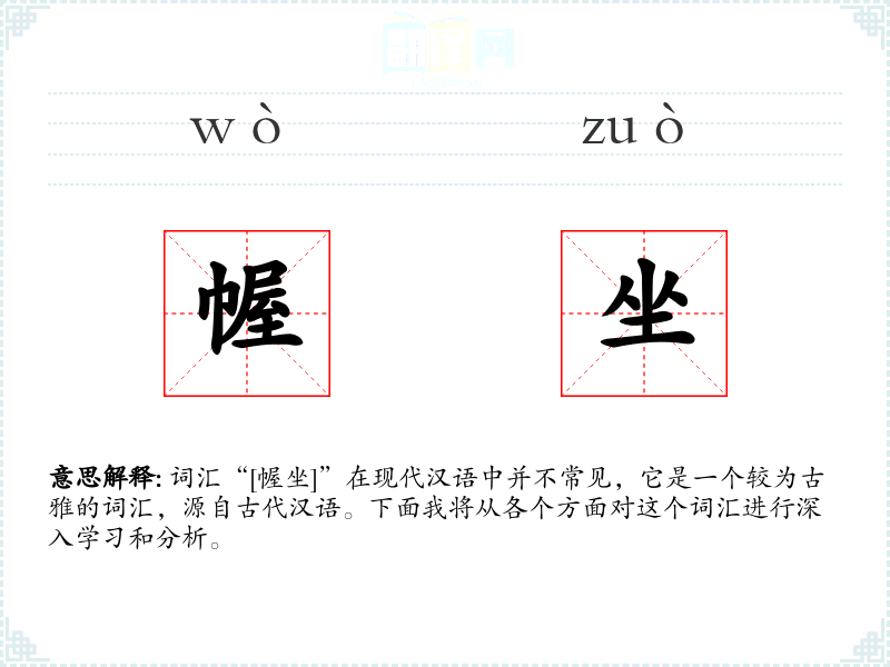 词汇“[幄坐]”在现代汉语中并不常见,它是一个较为古雅的词汇,源自古代汉语。下面我将从各个方面对这个词汇进行深入学*和分析。