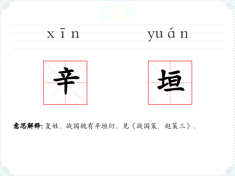 复姓。战国魏有辛垣衍。见《战国策.赵策三》。
