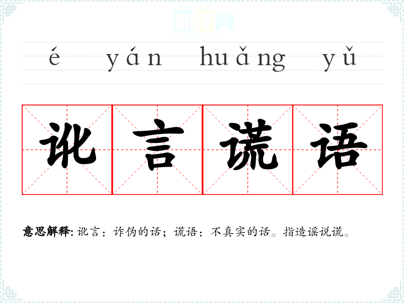 讹言:诈伪的话;谎语:不真实的话。指造谣说谎。