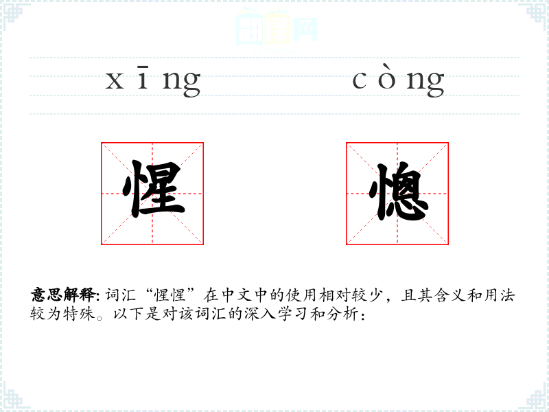 词汇“惺惺”在中文中的使用相对较少,且其含义和用法较为特殊。以下是对该词汇的深入学*和分析: