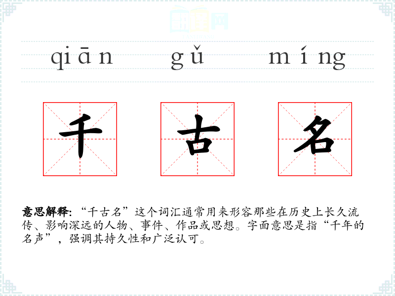 "千古名"的意思解释、千古名是什么意思由翻译网汉语词典查词提供。
