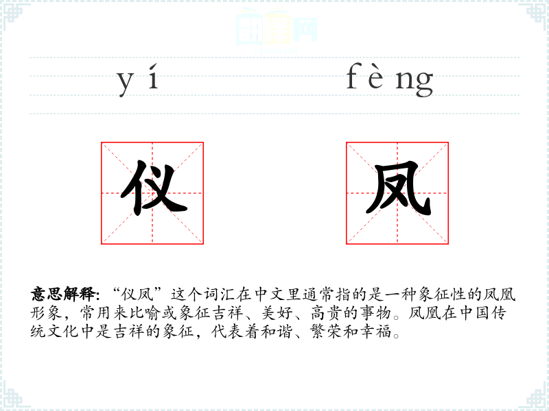 “仪凤”这个词汇不仅丰富了中文的表达,也承载了深厚的文化意义。在语言学*和表达中,它能够增添一种古典和优雅的氛围,是理解和欣赏**传统文化的重要词汇。