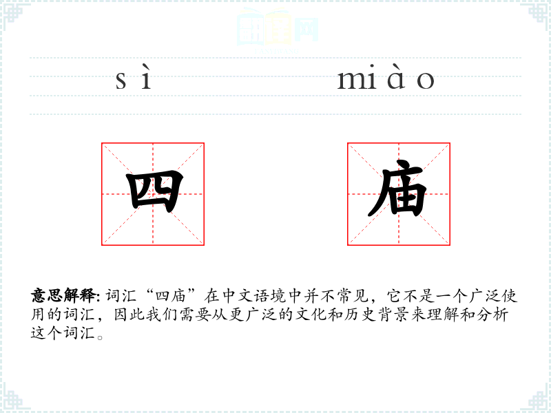 词汇“四庙”在中文语境中并不常见,它不是一个广泛使用的词汇,因此我们需要从更广泛的文化和历史背景来理解和分析这个词汇。