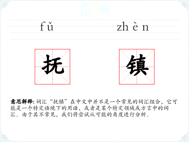 词汇“抚镇”在中文中并不是一个常见的词汇组合,它可能是一个特定语境下的用语,或者是某个特定领域或方言中的词汇。由于其不常见,我们将尝试从可能的角度进行分析。