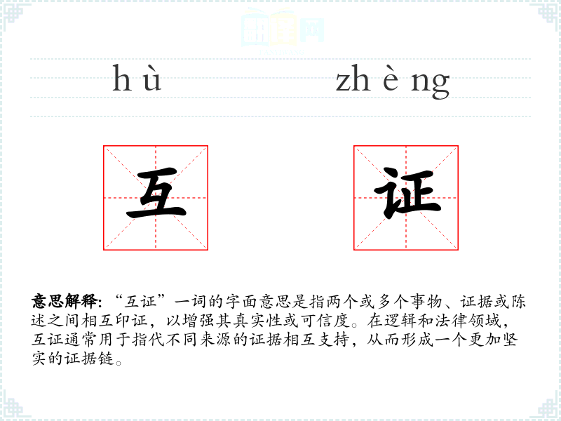 在英语中,“mutual corroboration”或“cross-verification”可以对应“互证”的概念。在不同文化中,互证的原则都是确保事实真实性和可信度的重要手段。