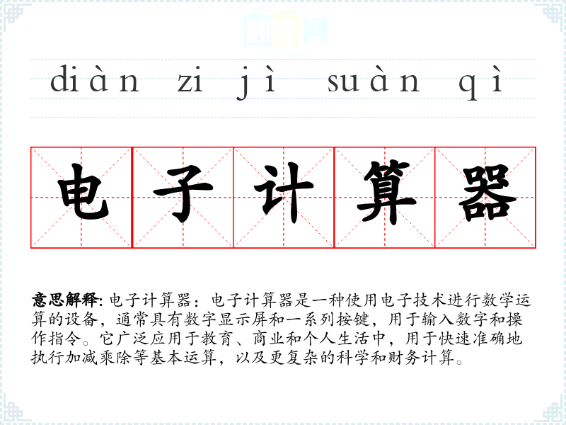 "电子计算器"的意思解释、电子计算器是什么意思由翻译网汉语词典查词提供。