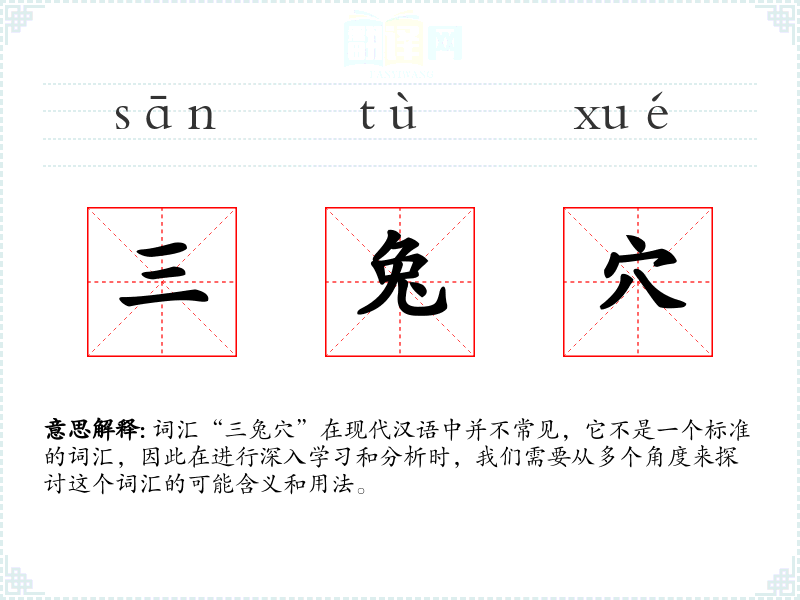 词汇“三兔穴”在现代汉语中并不常见,它不是一个标准的词汇,因此在进行深入学习和分析时,我们需要从多个角度来探讨这个词汇的可能含义和用法。