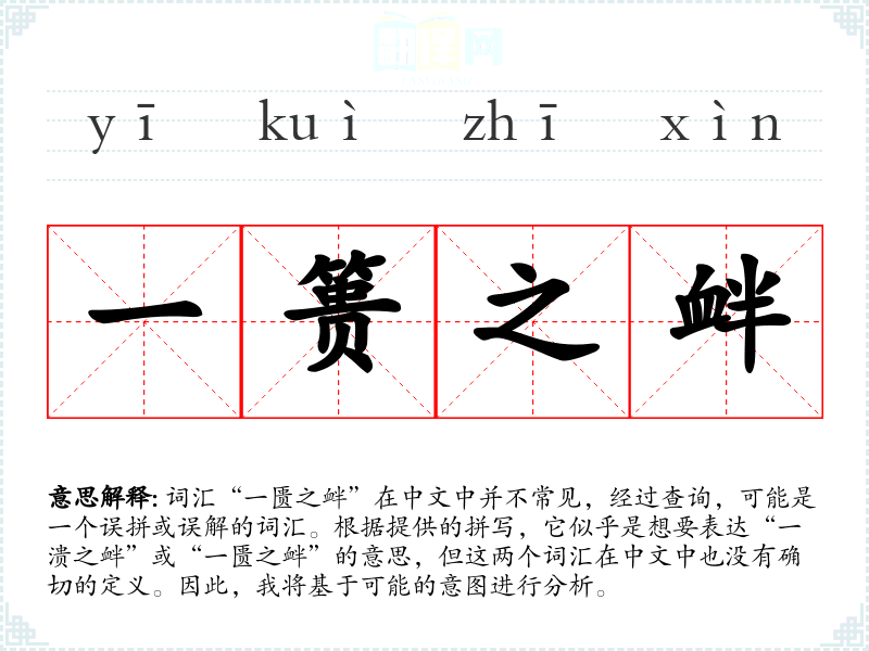 词汇“一匮之衅”在中文中并不常见,经过查询,可能是一个误拼或误解的词汇。根据提供的拼写,它似乎是想要表达“一溃之衅”或“一匮之衅”的意思,但这两个词汇在中文中也没有确切的定义。因此,我将基于可能的意图进行分析。