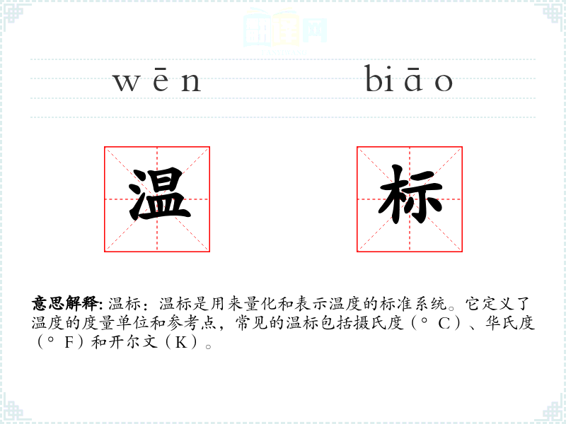 "温标"的意思解释、温标是什么意思由翻译网汉语词典查词提供。