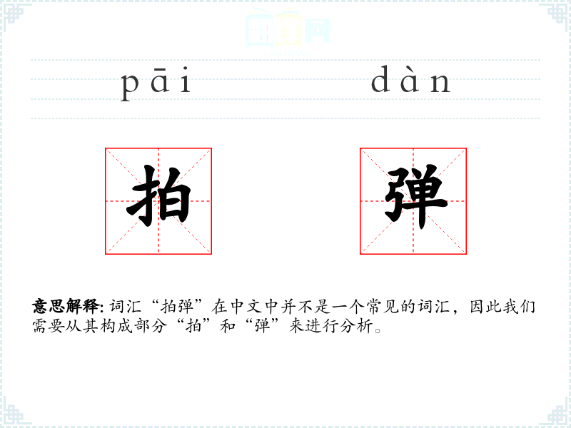 词汇“拍弹”在中文中并不是一个常见的词汇,因此我们需要从其构成部分“拍”和“弹”来进行分析。