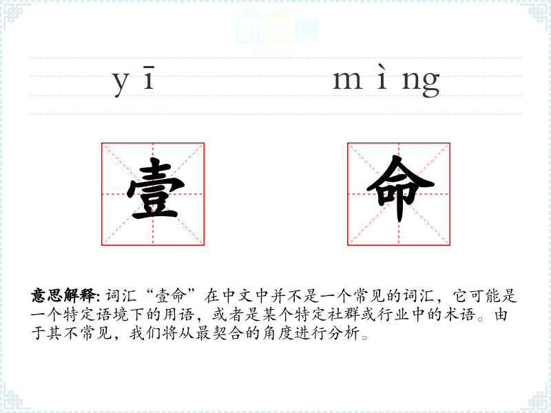 词汇“壹命”在中文中并不是一个常见的词汇,它可能是一个特定语境下的用语,或者是某个特定社群或行业中的术语。由于其不常见,我们将从最契合的角度进行分析。