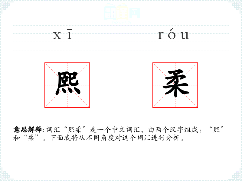 - 词源:“熙”字源自古代汉语,意为光明、繁荣;“柔”字也源自古代汉语,意为柔软、温和。